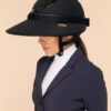 The cane visor was designed to finalize the silhouette of the rider. Lined with canvas, it has a grip strip designed with the DADA logo which allows the visor to stay in place on the helmet. The Velcro straps allow you to adapt the size of the visor. It was finalized with the integration of a golden Dada Sport plate placed on the left side of the visor.