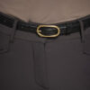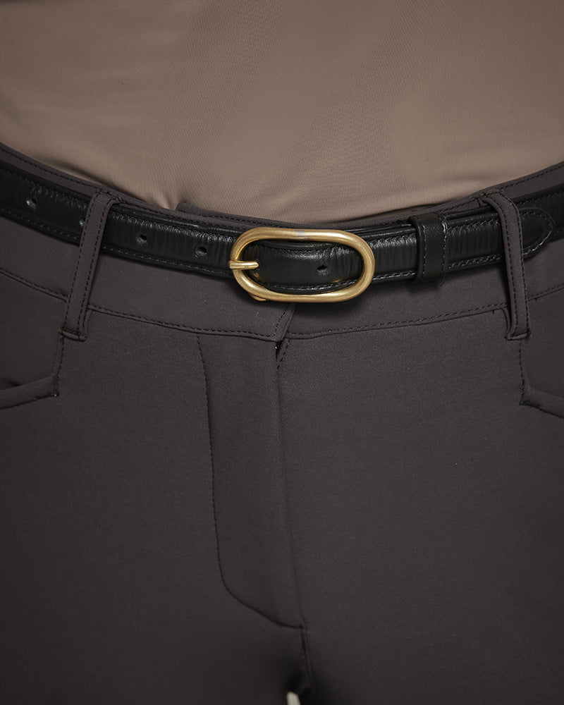 The Leone thin belt has been carefully designed to combine comfort, practicality and style. In soft leather and 2 centimeters wide, it has a slightly rounded appearance, to emphasize the riding silhouette. A saddlery rivet stamped with the simple DADA monogram from Poursin is subtly placed following the belt adjustment holes. An oval buckle from Maison Poursin finishes the piece. Also note that the belt is presented in an organic fabric storage pouch screen-printed with the Dada monogram. An ideal gift to give to your loved ones.
