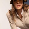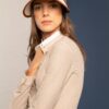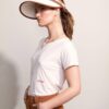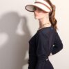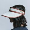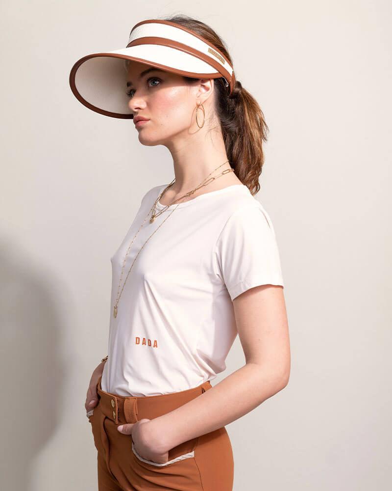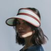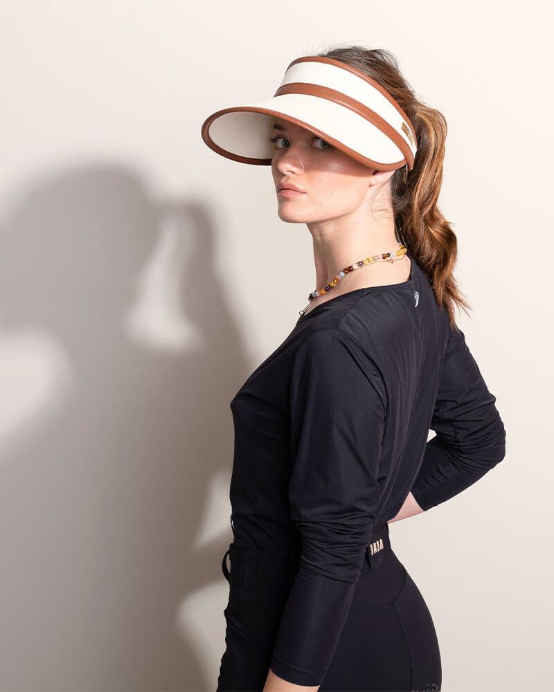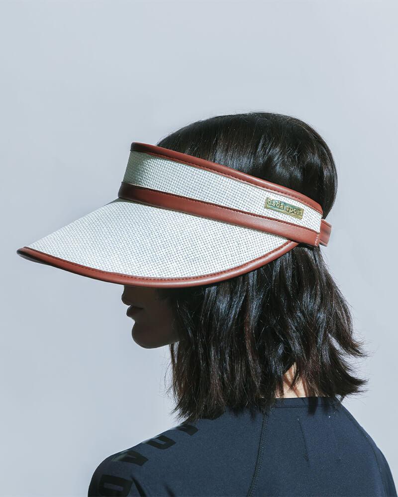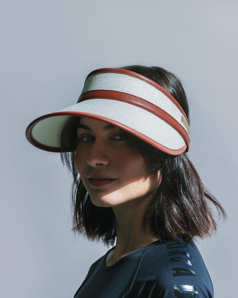 Visor made in ecru cane work decorated with synthetic leather details in terracotta color.